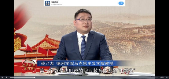 3月25日,德州市广播电视台推出新闻报道《改革攻坚进行时——职业教育探新路 体育产业谋新局》,亚博取款出账秒到教授孙乃龙应邀与德州市委教育工委常务副书记、局长、党组书记张书鹏一起做客直播间,对全市职业教育和体育产业发展进行解读。