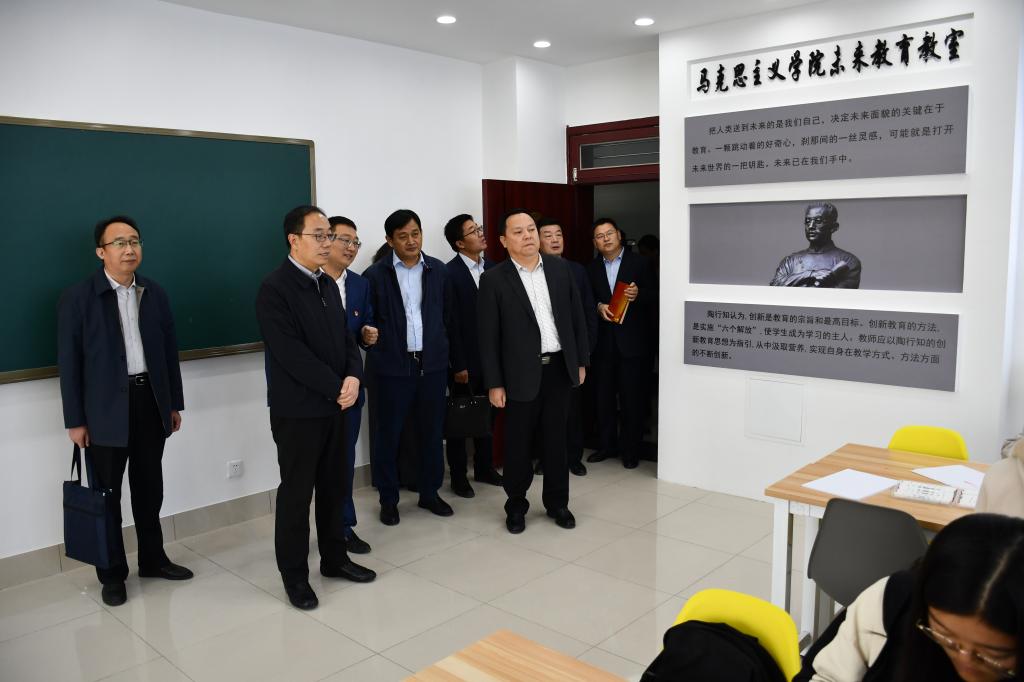 在调研过程中,他还与学院学生进行沟通交流,亲切询问了学生在学习、生活等方面的情况,鼓励他们珍惜美好时光,志存高远,脚踏实地,积极进取,努力学习,争取将来做一个有信仰的思政课老师。