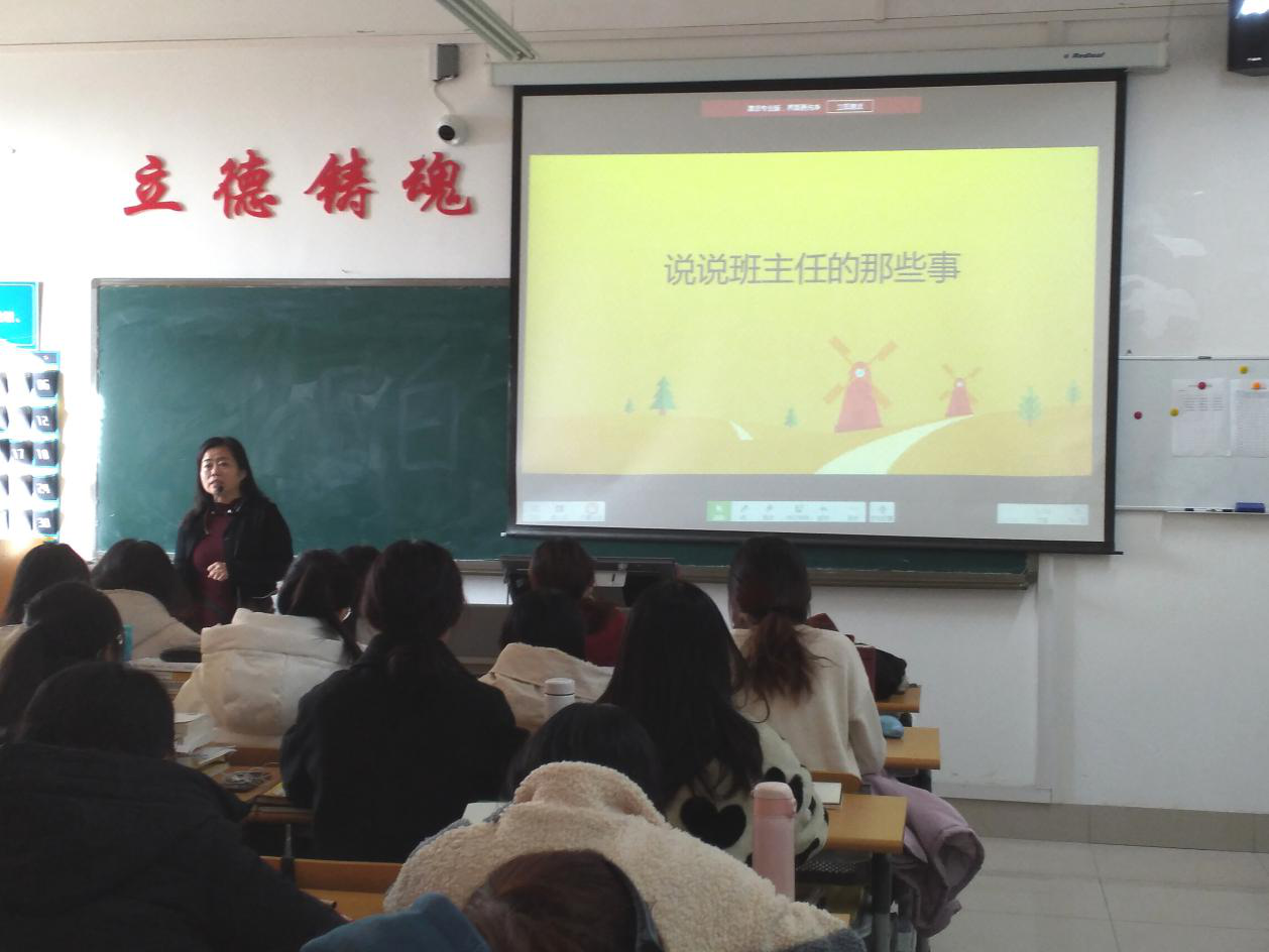 本次活动特邀德州九中的马丽霞老师担任主讲。马老师结合自身丰富的班主任工作经验,介绍了班主任的独特管理艺术,对班主任群体如何在实践的基础上获得专业成长做了深刻解读。对于一个班主任来说,理性的专业之爱才是师爱之道,从“有爱”到“会爱”才是班主任专业发展的正道。从管理技巧的个案运用到管理策略的整体实施,不断在实践中对教育经验进行优化提升,也是班主任成长必须迈出的一步。马老师的经验分享为同学们将来适应工作发展需要,做合格班主任提供了理论和方法的指导。